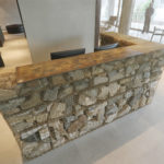Direct Metals® supplied brass lockcrimp cage wire mesh to a customer for creating a stunning Gabion Reception Desk. The desk is comprised of eight unique brass cages of four distinct mesh openings filled with reclaimed rocks from the Brooklyn, NY area, and is a welcoming feature at a high-end residential building along Brooklyn Bridge Park. The desk covers 12 sq. ft. and stands 3 ft. 8 in. high with an approximate weight of 4,000-5,000 lbs.